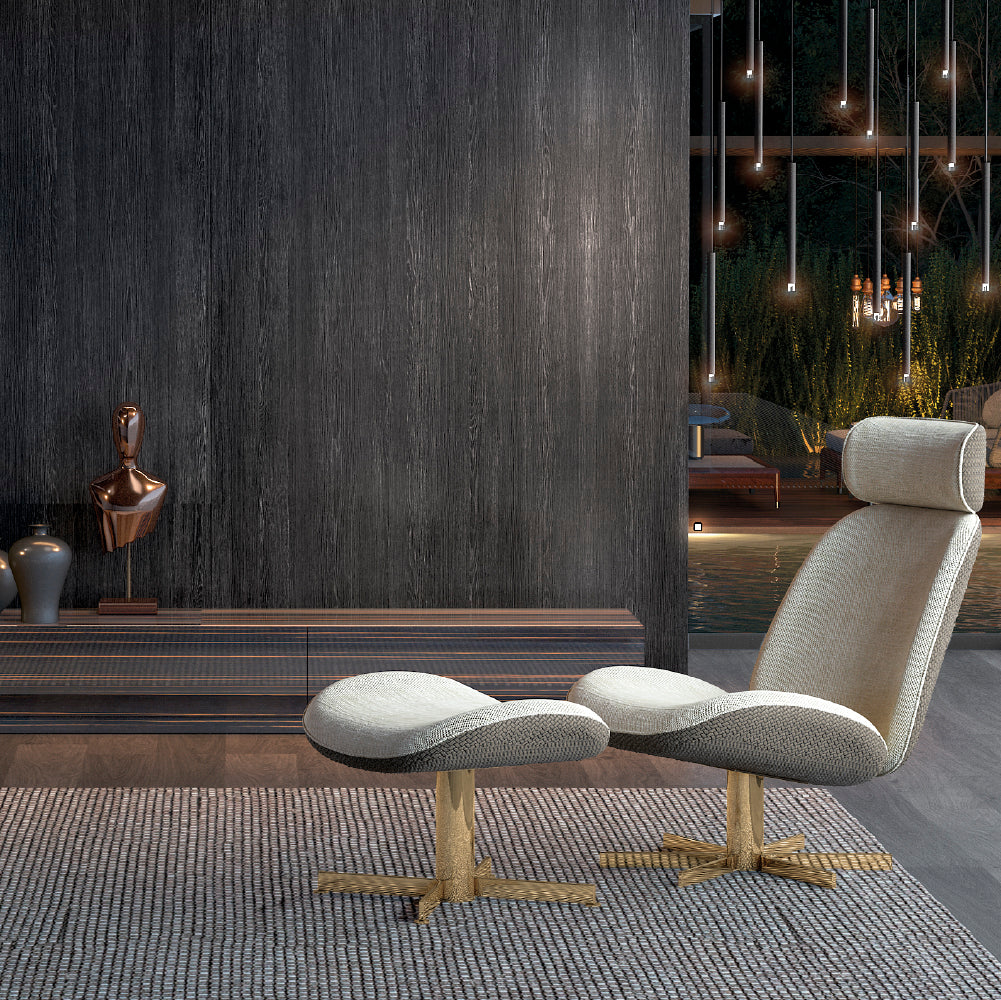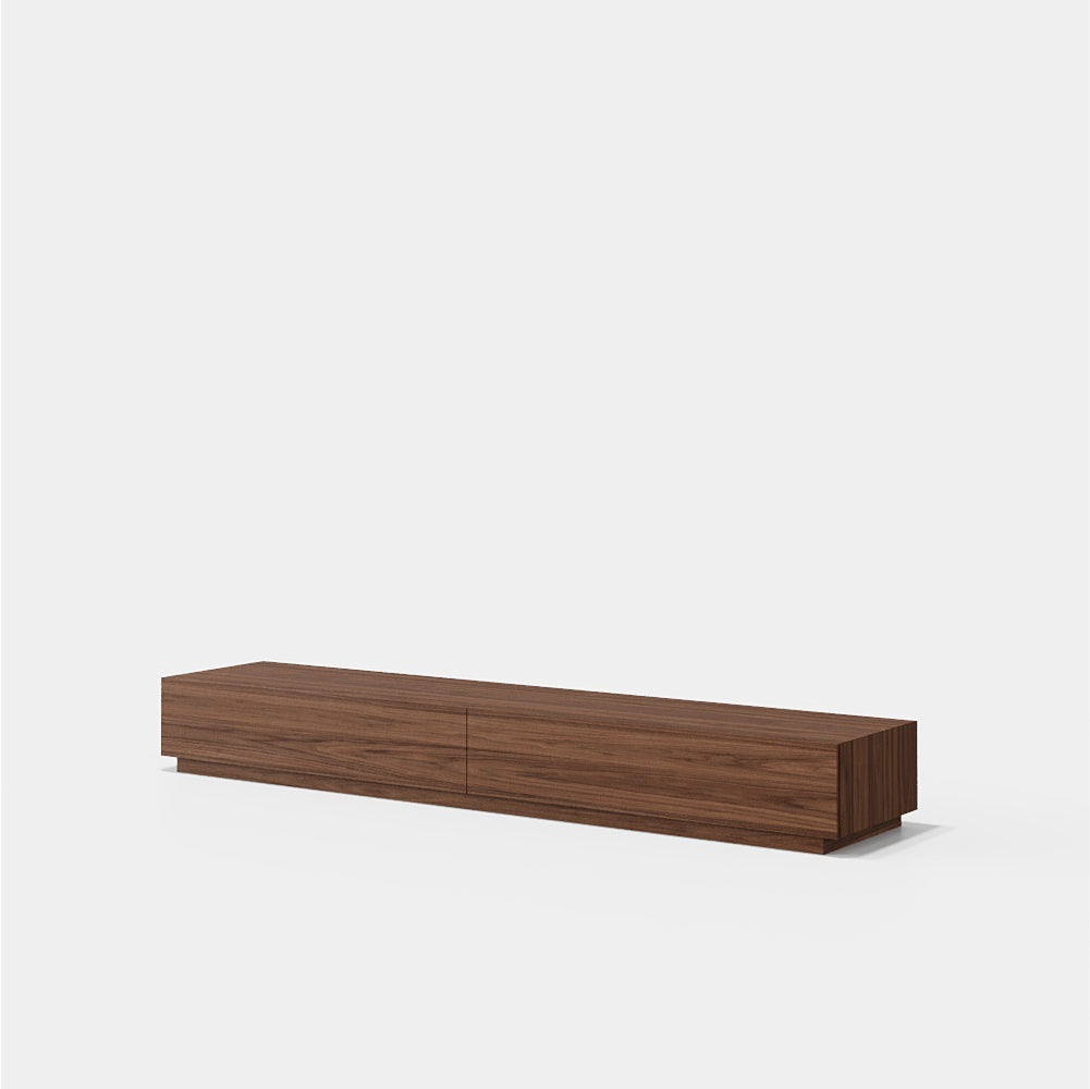 The Ellender TV Base with 2 Drawers combines sophistication and functionality, featuring finishes in matte lacquer, glossy lacquer, or elegant woods such as Smoked Eucalyptus, Walnut, or Oak, making your space more intimate.