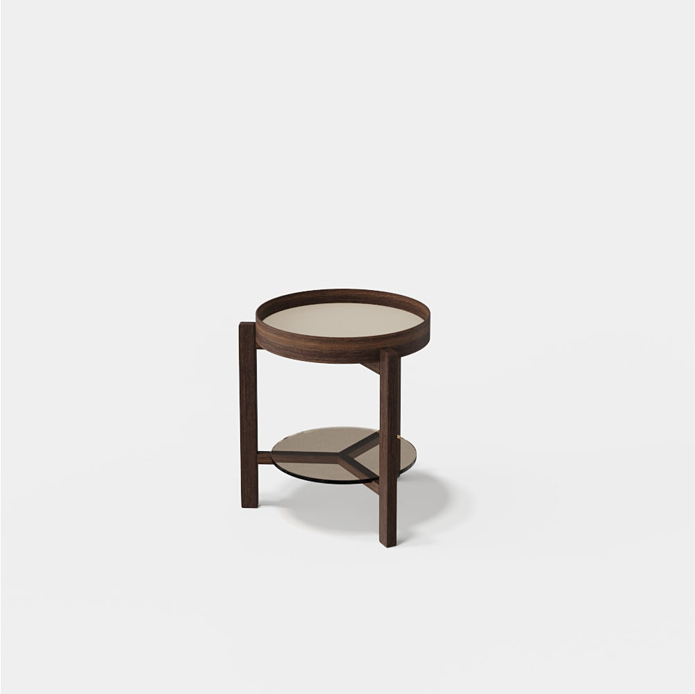 The Colline Side Table offers elegance and sophistication, with finishes in matte or glossy lacquer. Customize with woods such as Smoked Eucalyptus, Grey Ash, Walnut, or Oak, for a unique and modern design.
