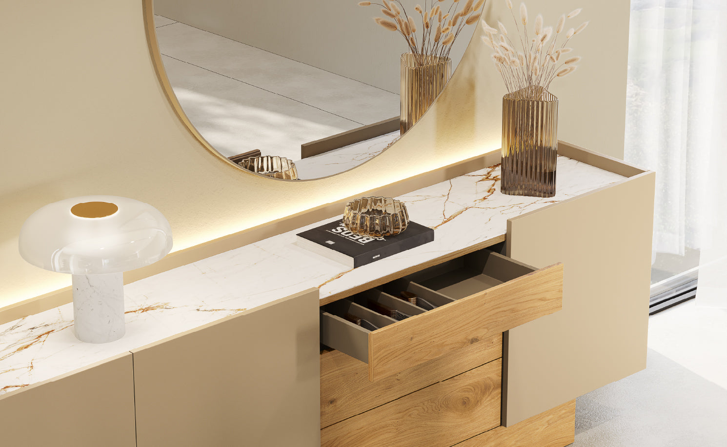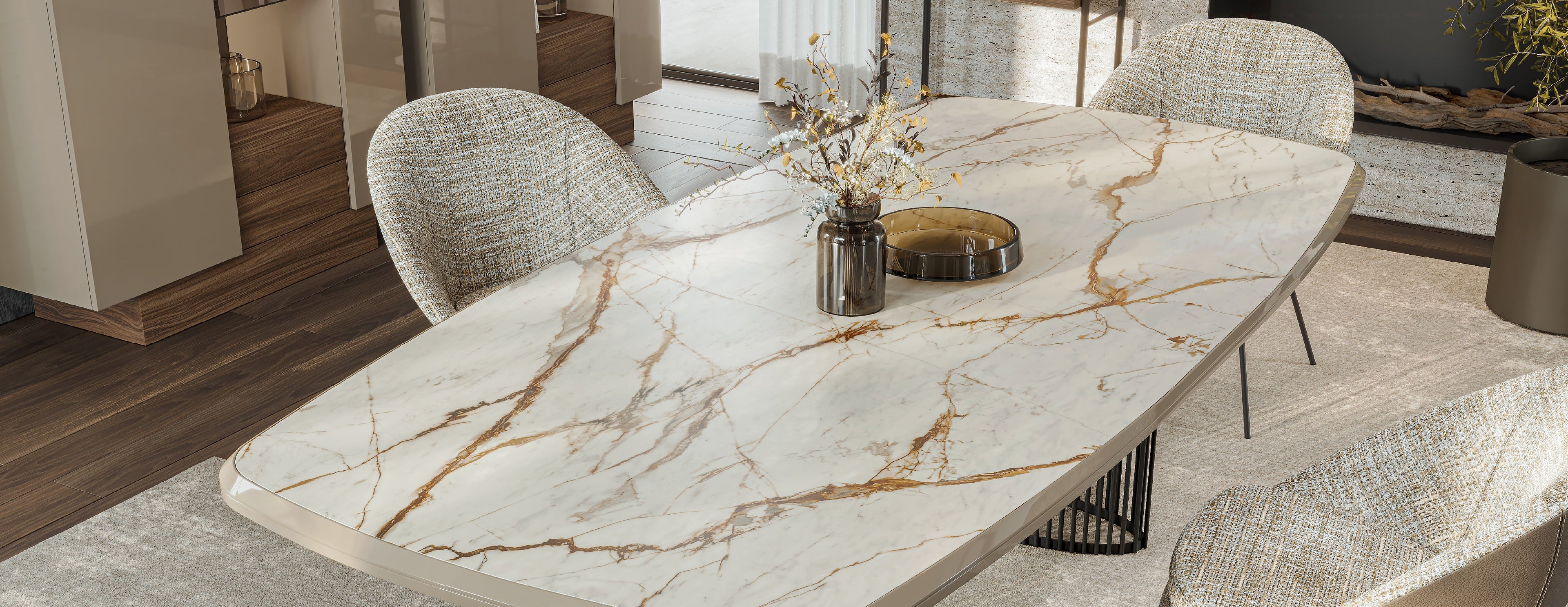 Ceramics are the result of a fusion between technology and nature, combining selected minerals with advanced sintering processes. The outcome is a material with high structural density, resistant to impacts, scratches and thermal variations—a sophisticated choice for premium furniture.