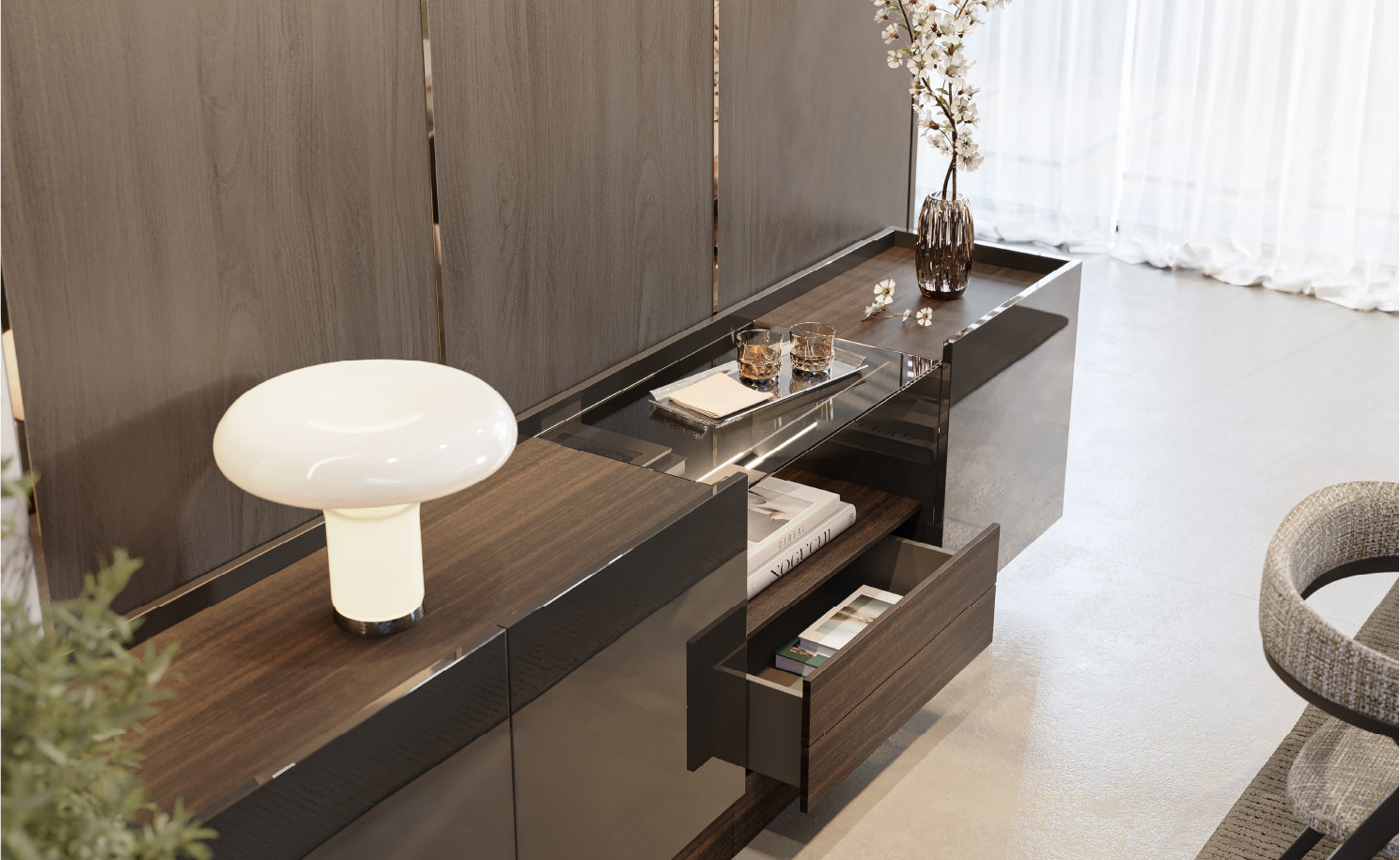The woods used in our collections are meticulously selected by skilled craftsmen, ensuring a perfect harmony between aesthetics and functionality. Whether it's the warmth of oak, the depth of walnut, or the sophistication of custom finishes, each choice is made to offer timelessness and character.