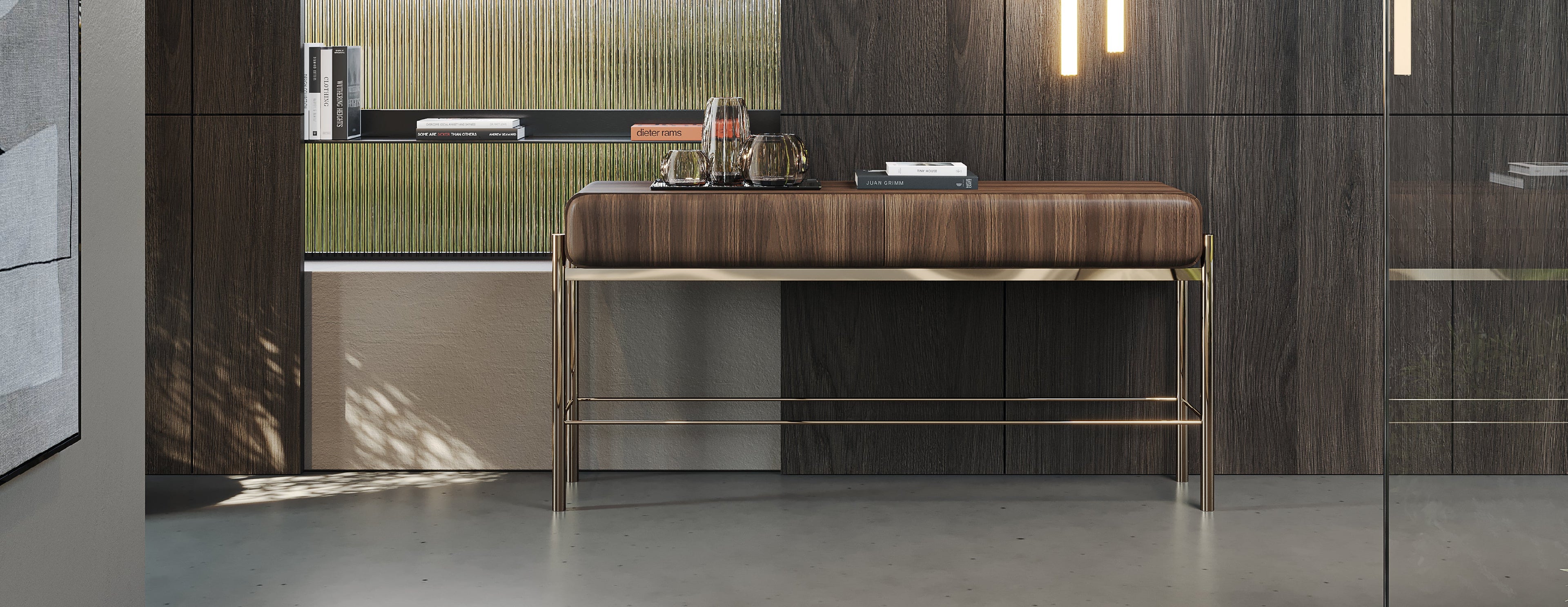 The surfaces subtly reflect light, creating elegant contrasts and unexpected highlights. It is the balance between robustness and visual lightness, where metal becomes an essential element in the composition of the space.